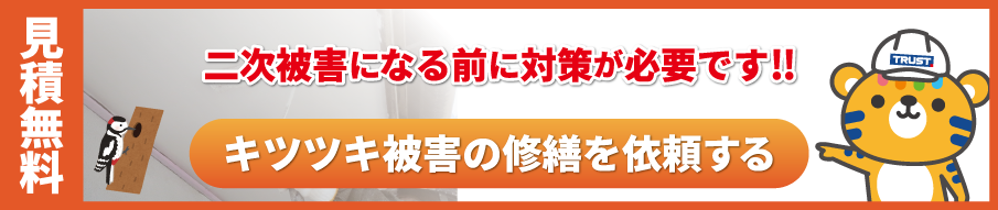 キツツキに開けられた穴を放置しておくと躯体の腐食や、ハクビシンなど害獣の侵入など様々な2次被害に繋がります。
