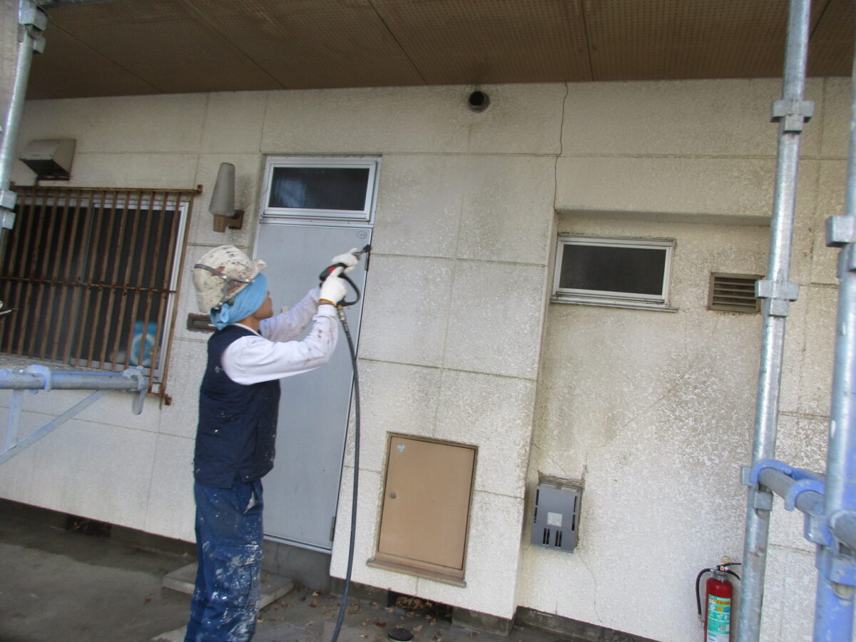 補修が完了したら下塗り1回、上塗りを2回行います。