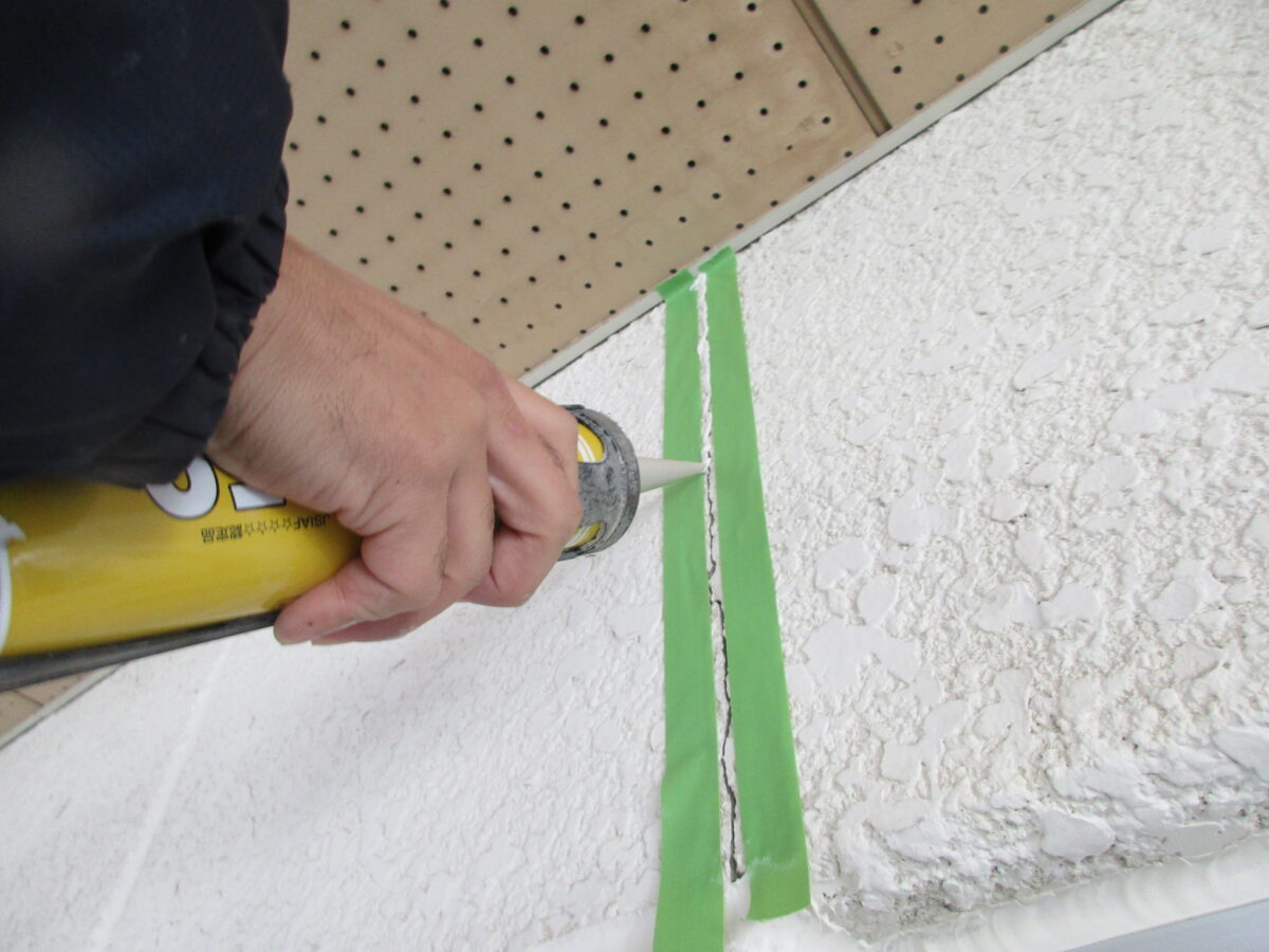 乾燥したら塗装に入る前にひび割れなどの補修を行います。