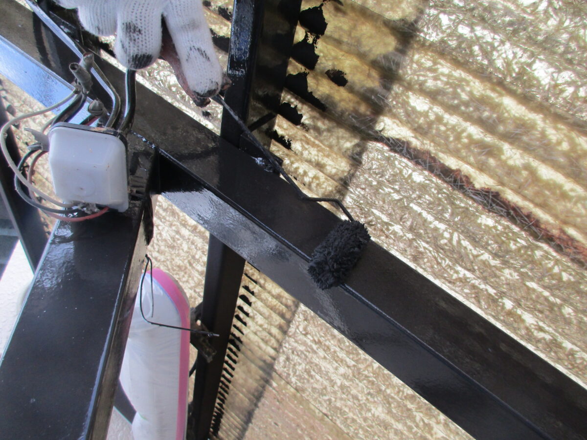 鉄部は塗装する前(高圧洗浄の前)に研磨処理を行います。塗装後の耐久性にかかわってきますので大事な工程です。