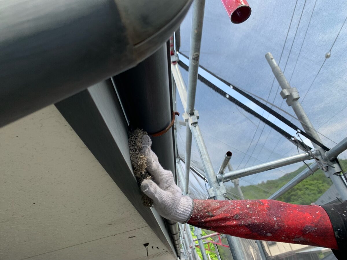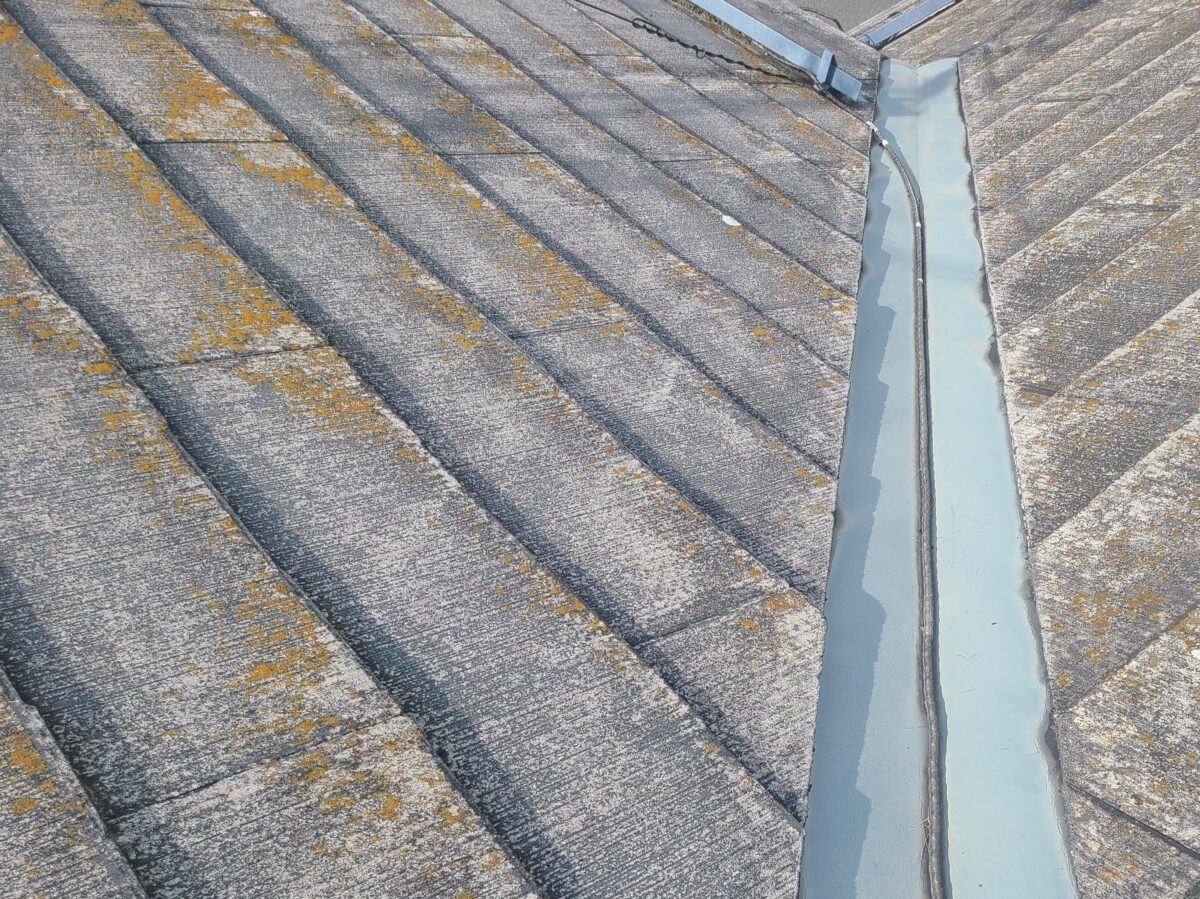 今回の屋根はスレート材なので、ケレン作業、高圧洗浄の時に気を配りながらコケをとりました。