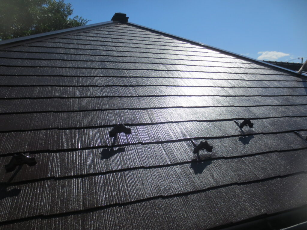 鋼板屋根は「下塗り+上塗り+上塗り」の3工程ですがスレート屋根の場合、材質上塗料を吸い込みやすいのでたっぷりと4回塗ります。