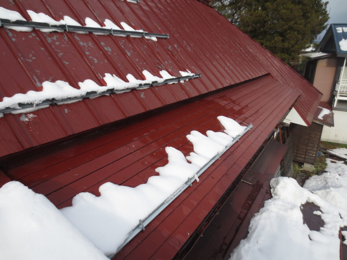 ④雪解け水が溜まっても漏水しないような屋根材へ交換をする。
