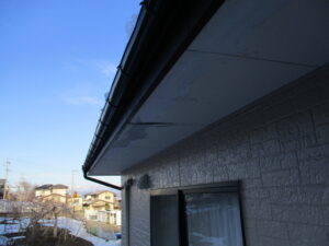 普段は雨漏りしない屋根でも、冬になると軒天井にシミや剥がれが出ることがあります。