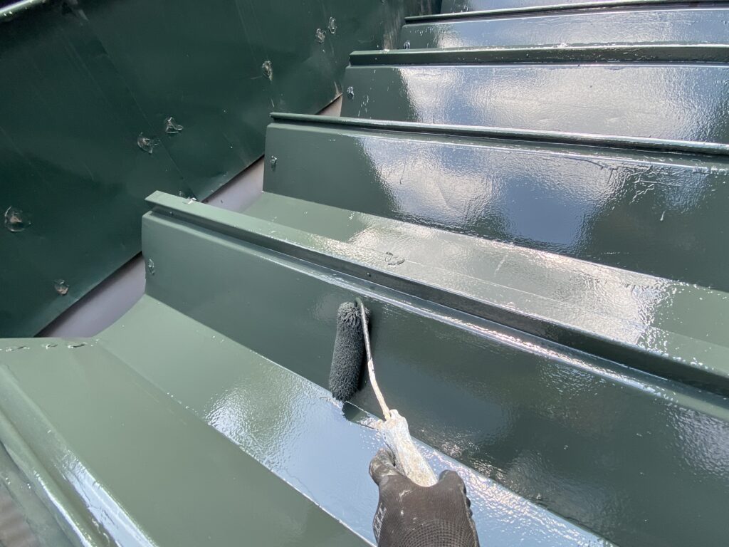上塗りでは合計2回塗っていきます。しっかり規定回数塗ることにより機能と美観を引き出すことができます。