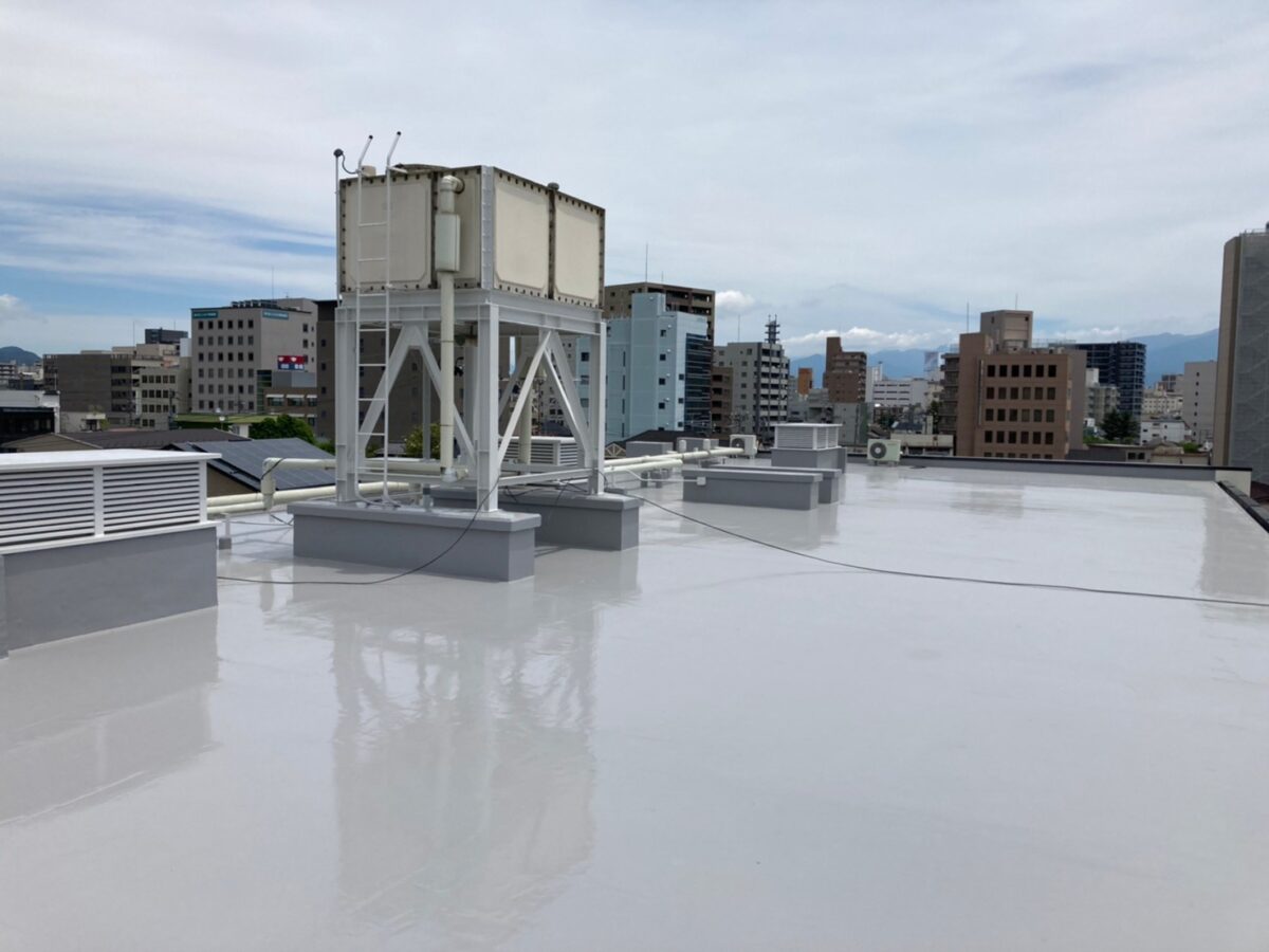外壁以外にも階段や床面、屋上の防水なども行いました。