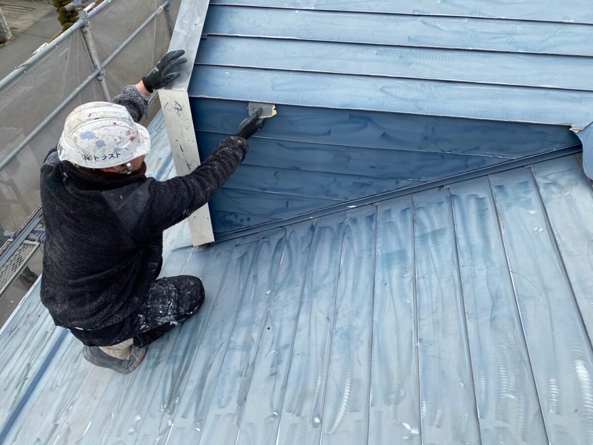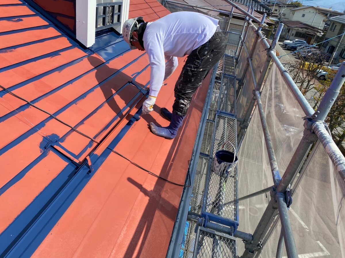 使った材料は関西ペイントのダイナミックルーフになります。色はナスコンです。
