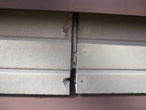 コーキングも硬化やひび割れ破断が見受けられその箇所から雨水が入り、サイディングの反りが発生しておりました。