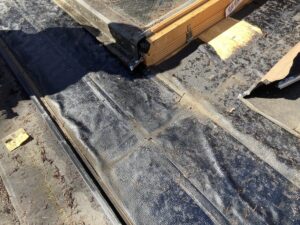 勾配が緩やかだったため、より厚みのあるゴムアスルーフィングを使用。新しい屋根材の施工