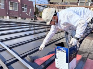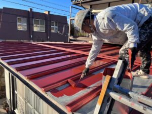 屋根が乾燥すればいよいよ塗装作業に入ります。