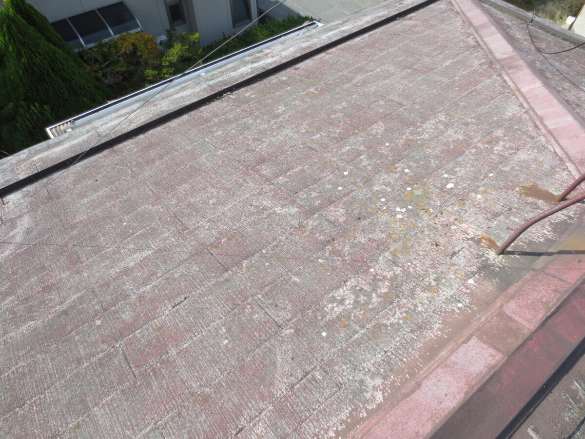 屋根の状態を見させていただくと、築年数がそれなりに経過しているスレート屋根で、塗装による防水機能を持たせてあげた方がよい状態でした。