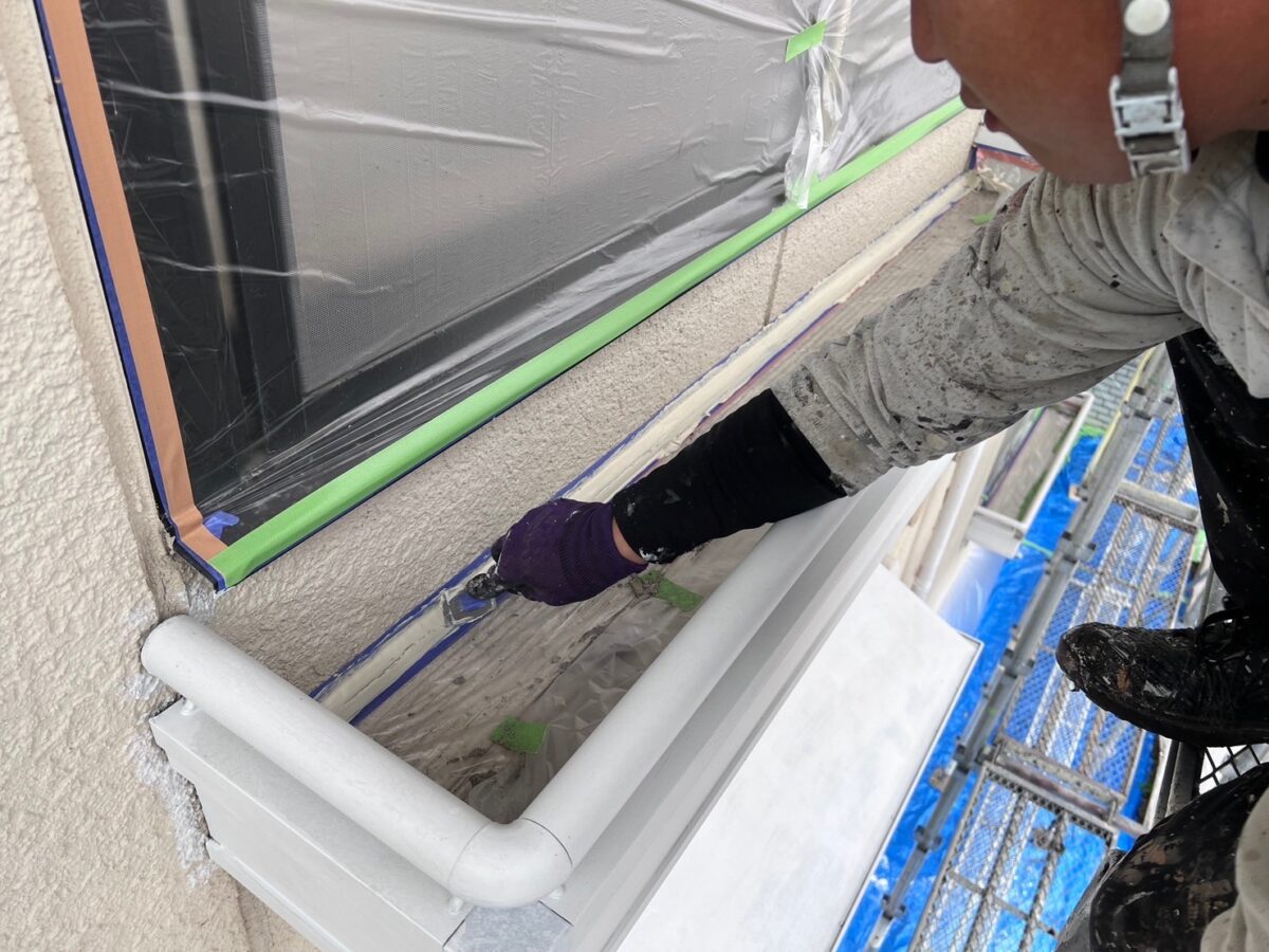 下塗り材はあとから塗る塗料との密着性を上げためにも必要な工程です。下地がしっかりすることにより仕上がりも良くなるのできちんと塗装していきます。
