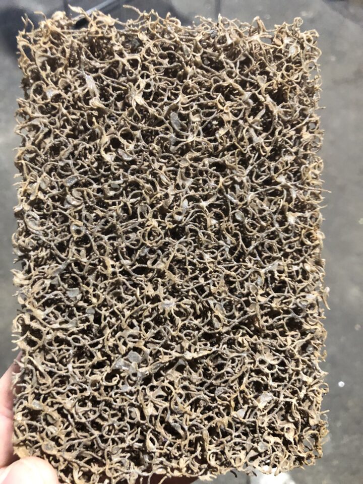 最初に行う作業は、ケレン(研磨)という鉄部の錆びている所や塗料の密着性を良くする為に、下地を磨く作業になります。ケレンを疎かにすると、五年以上保つ事が出来る所が一年〜二年しか保つ事が出来なくなります。また、今回ケレンで使用した道具もご紹介いたします。今回使用した道具は、マジックロンという繊維が硬く編んであるたわしのような物です。これを使用する事で必要以上に傷付けずに磨く事が出来ます。