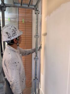 下塗り材乾燥後中塗りをしていきます。