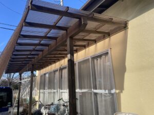 現状のままでは、波板上の外壁や軒天井、破風板・雨樋が塗装できませんので