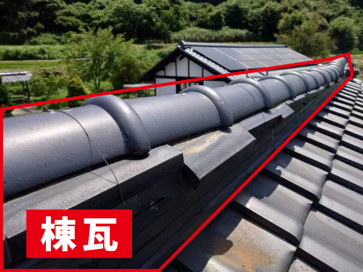 棟瓦とは、屋根の頂上などにある瓦を高く重ねた部分のことを言います。