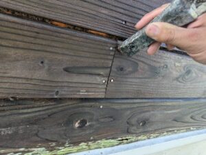 木材の伸縮に塗膜が追従できるよう、旧塗膜をしっかりと取り除くことが大切です。