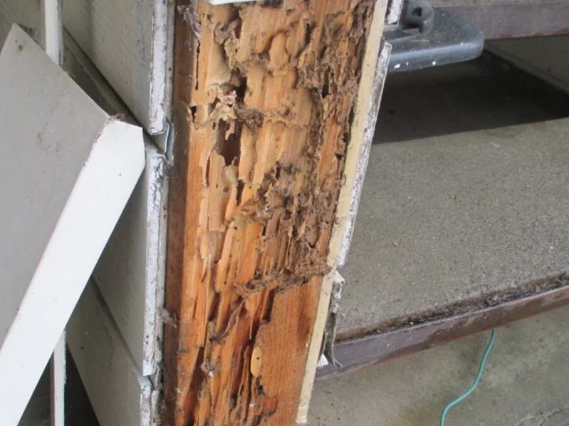 雨漏れが壁や屋根の下地まで染み込み、柱や床に伝わり、建物内部の木材が腐食、またシロアリなど害虫による食害を引き起こします。