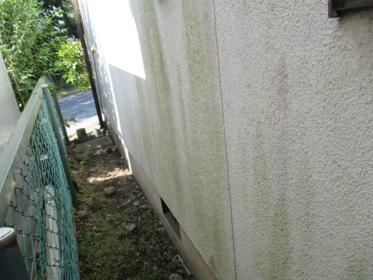 また、壁にコケが生えてきている場合にも、その塗料の力が失われつつあります。主に北面など陽の当たりにくい箇所は苔が生えやすいのでチェックしてみてください。