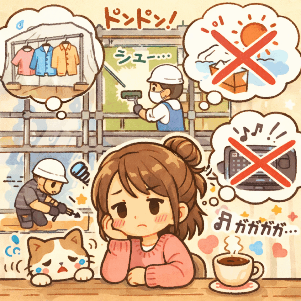 外装リフォーム中は、どうしても普段の生活に影響が出ます。