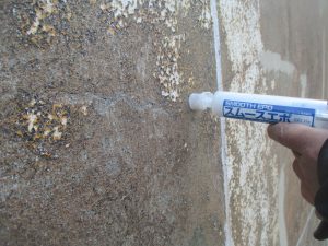 2mm以下のクラックでカットせずに1液弾性エポキシ樹脂を圧力をかけ、注入していきます。