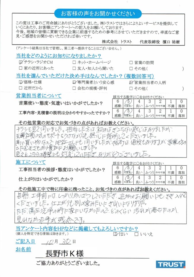 長野市K様 施工データ