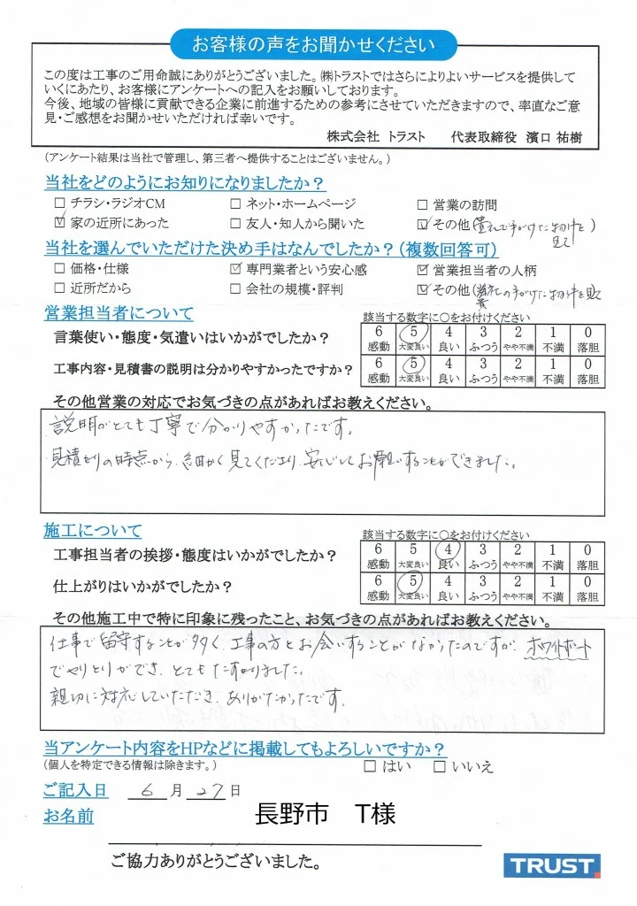 説明がとても丁寧で分かりやすかったです。見積の時点から細かく見て下さり、安心してお願いすることが出来ました。
