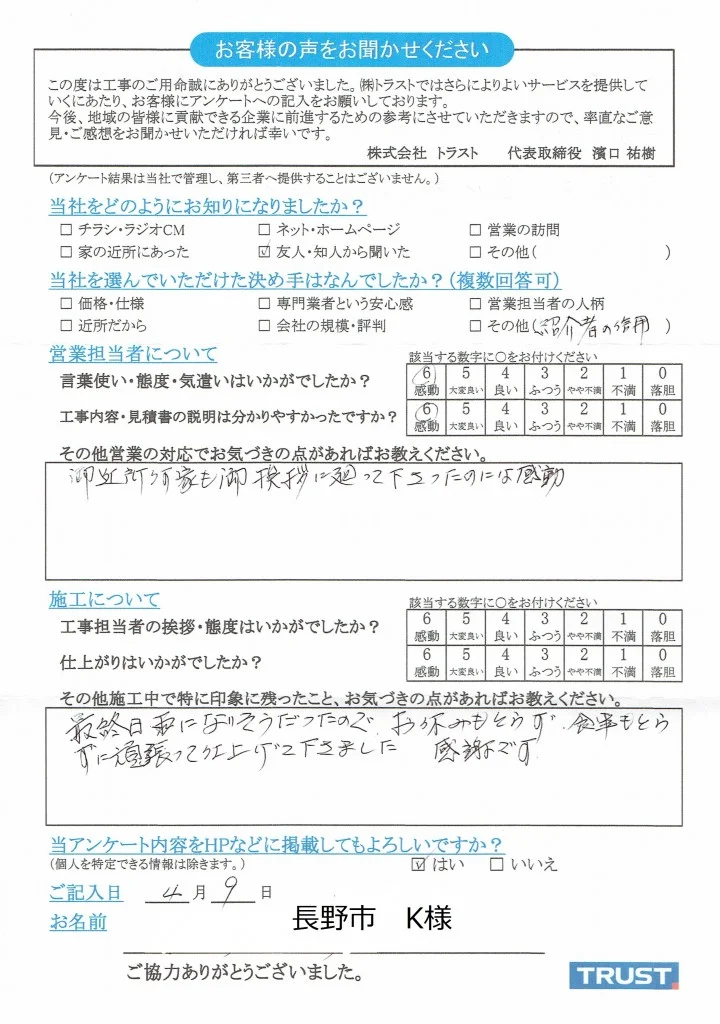 HOME > お客様の声 口コミ・評判 > 長野市 K様