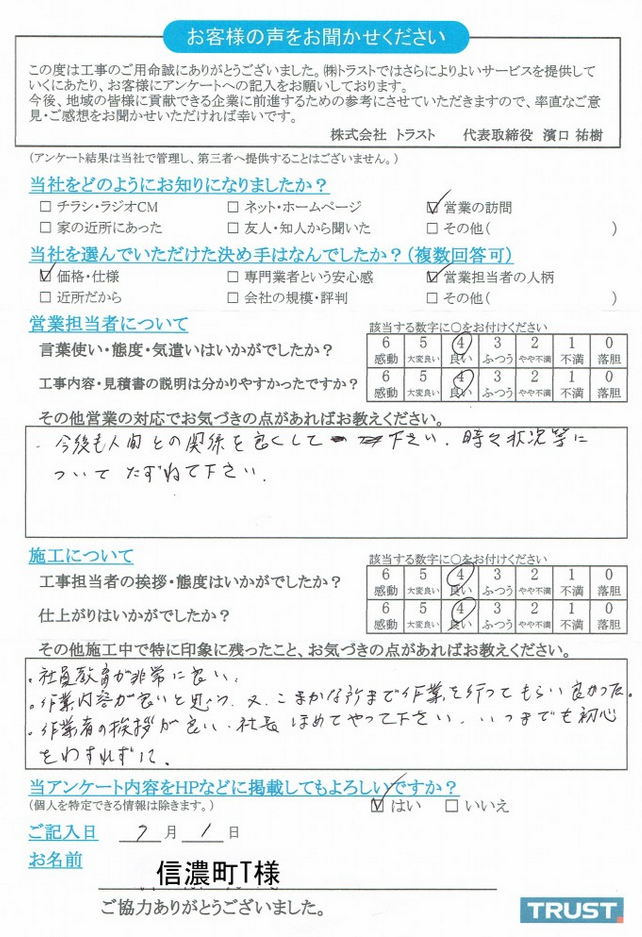 この度は、外壁塗装工事を株式会社トラストにお任せいただき、誠にありがとうございました。