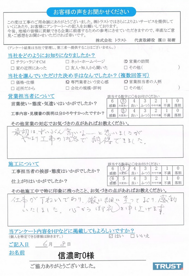 HOME > お客様の声 口コミ・評判 > 信濃町O様
