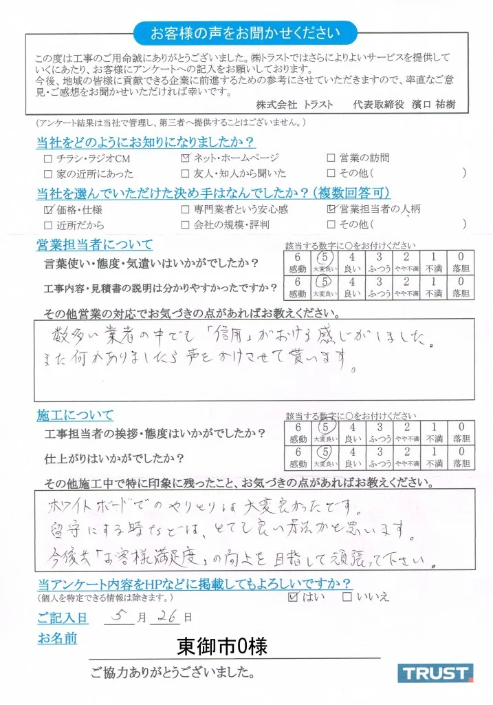 この度は数ある塗装会社の中から、弊社トラストにご用命いただき誠にありがとうございました。