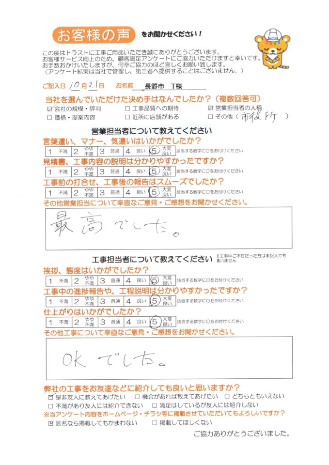 HOME > お客様の声 口コミ・評判 > 長野市 T様