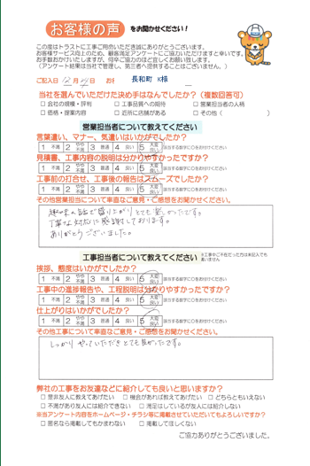 HOME > お客様の声 口コミ・評判 > 長和町 K様