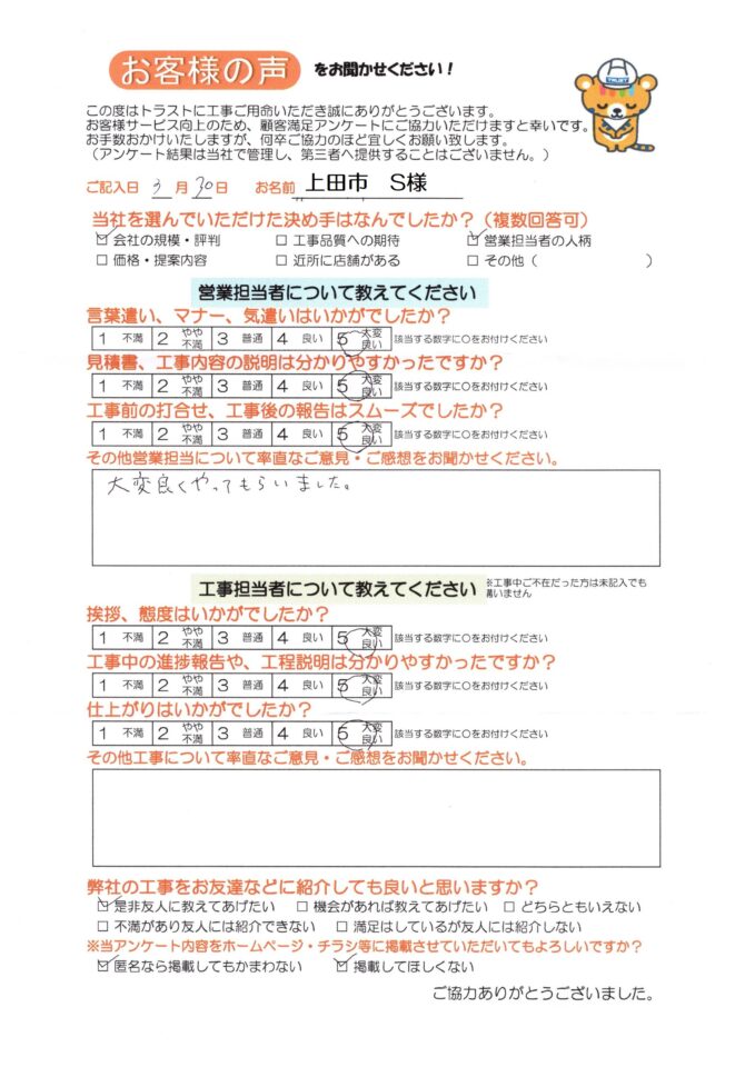 HOME > お客様の声 口コミ・評判 > 上田市 S様