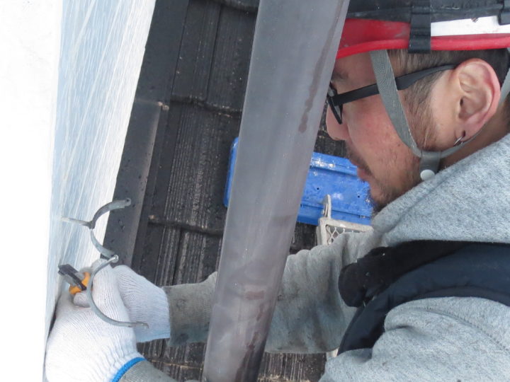 冬場、軒樋は屋根からずり落ちた雪が引っかかってしまい変形し、不具合が発生することがあります。今回は特に痛みが激しかった部分のみ交換頂しました。