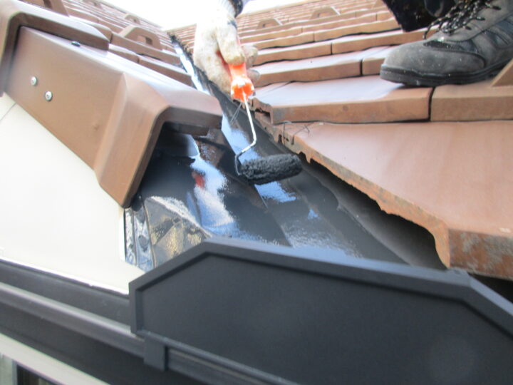 谷樋なども、刷毛やローラーを使用し塗装しました。