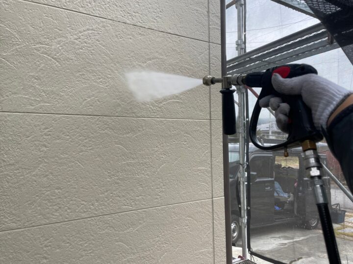 業務用の高圧洗浄機を使用して、汚れを入念に洗い流していきます。