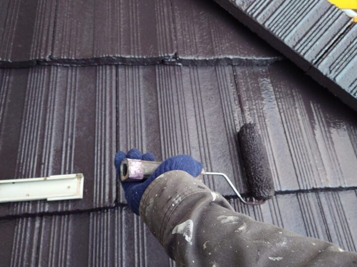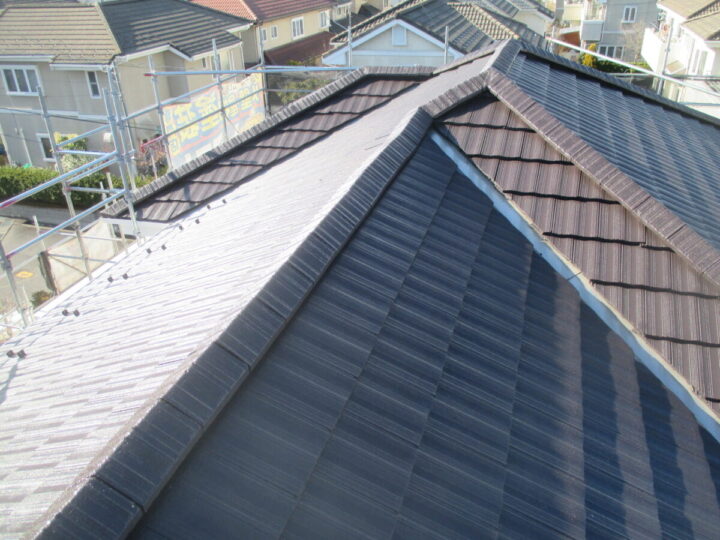 モニエル瓦の屋根は、綺麗に洗浄した上で、高耐候フッ素塗料仕様、