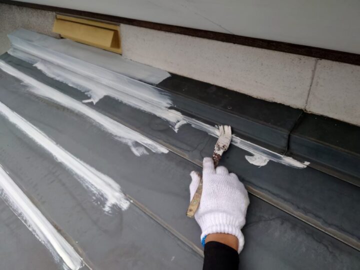 屋根材の間も刷毛を使い丁寧に塗装していきます。