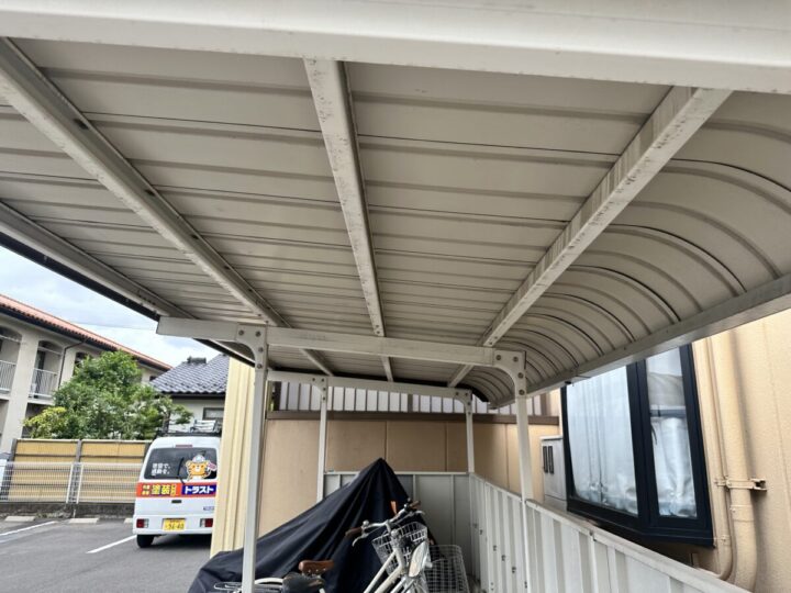 駐輪場屋根はアレスダイナミックルーフを使用しています。