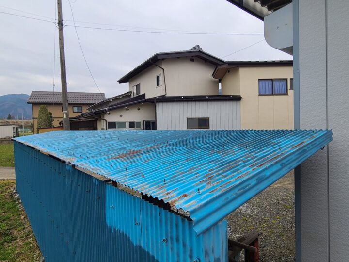 物置きも丁寧に仕上げます。波板は塗装する面積が