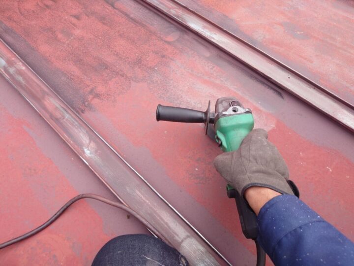 塗料の密着性を高めるため、表面に細かなキズをつけていきます。