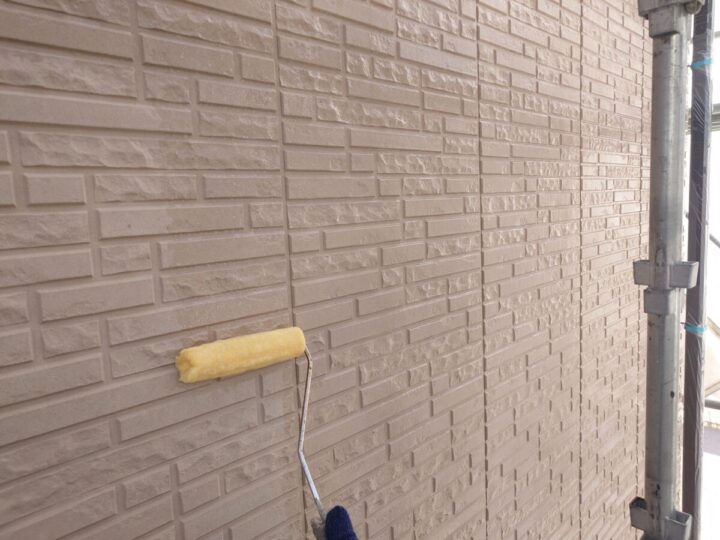 下塗り後、塗料の性能を発揮できる塗膜にする為、上塗りを2回行います。