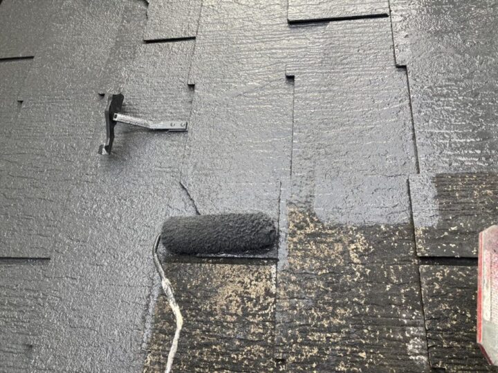 スレート屋根は下塗り材が非常に浸透しやすいです。その為2回塗装し、浸透による塗りムラがないようにします。