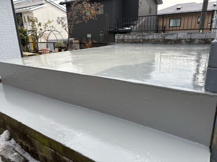 駐車場部ブロック塀劣化や屋根部の防水塗装しました。防水機能の低下は直接の雨漏れの原因になるのでメンテナンスをおすすめします。