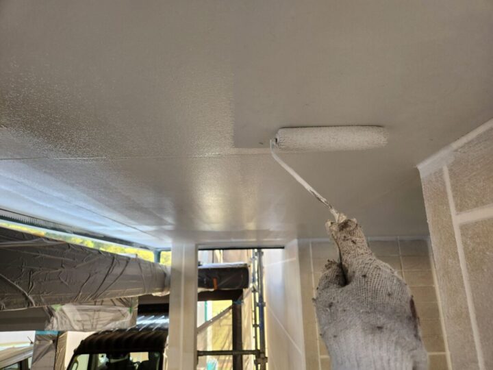 下塗りをした後、刷毛やローラーを使用し塗り残しがないよう丁寧に塗装します。