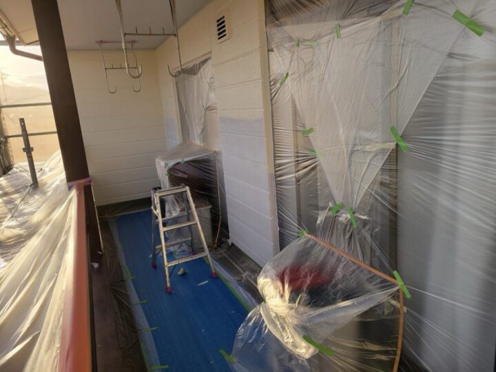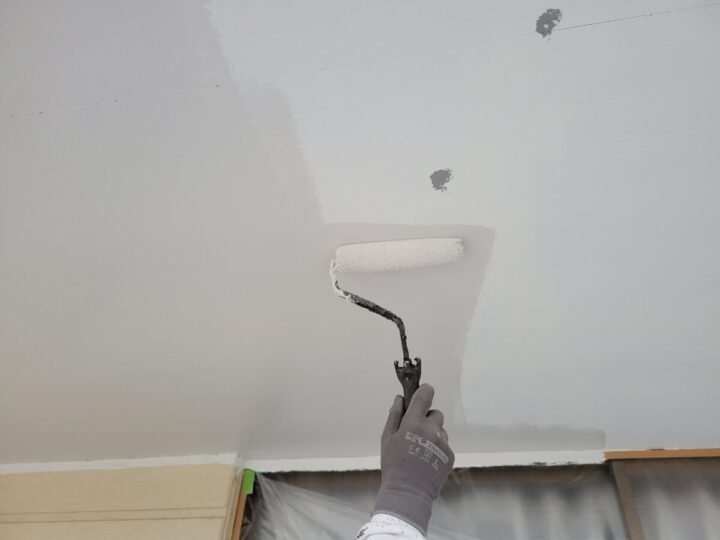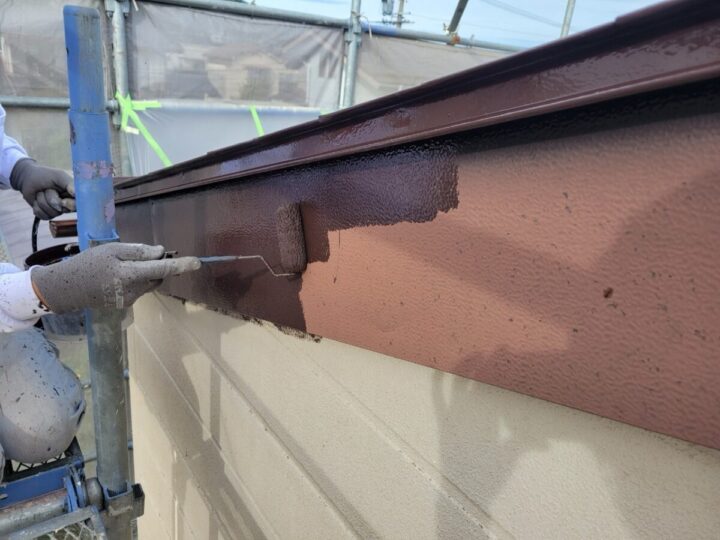 下塗り後、塗料の性能を発揮できる塗膜にする為、上塗りを2回行います。付帯部塗装
