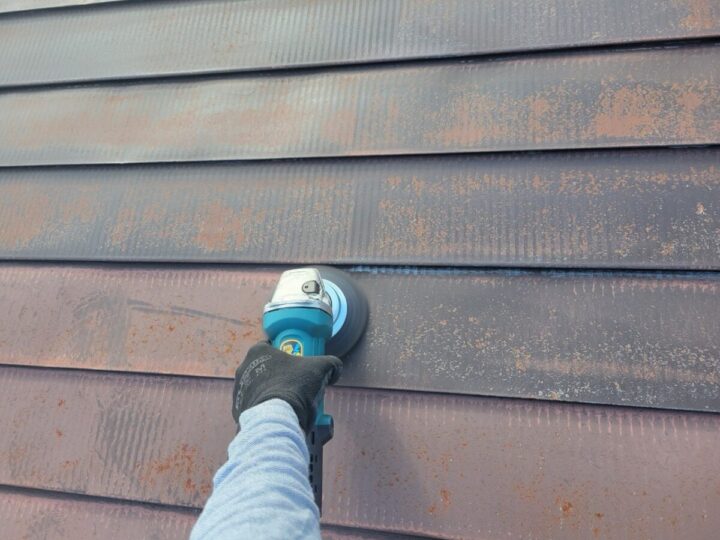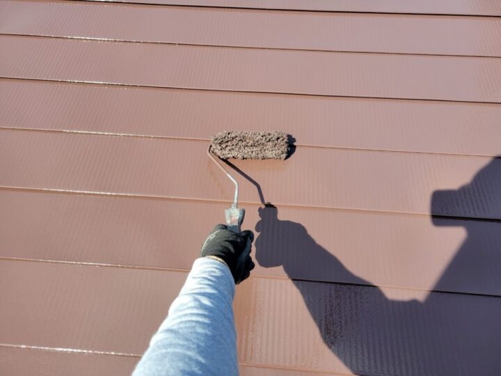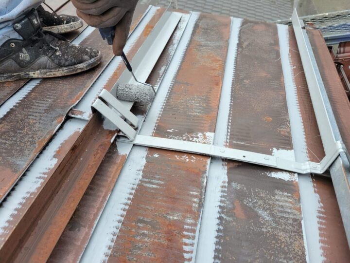 下地の状態や材に合わせた下地調整剤(サビ止め)を塗装いたします。屋根上塗り(1回目)