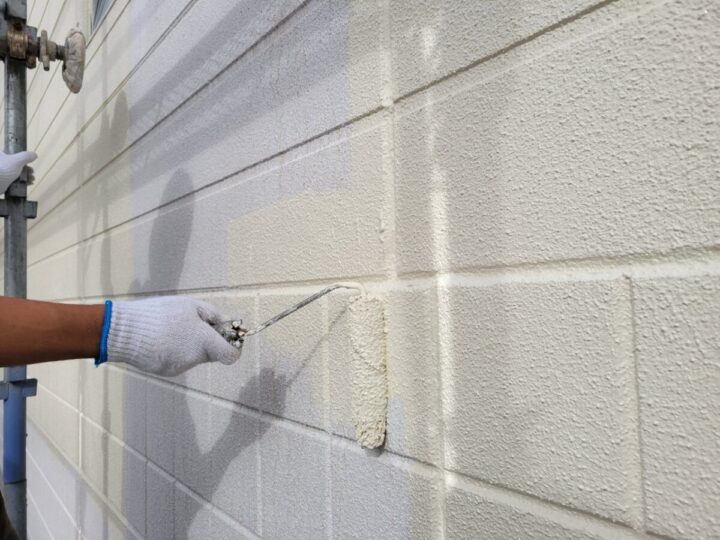 塗料を薄めすぎたりせずに、規定量を塗布することが必要です。外壁上塗り(2回目)