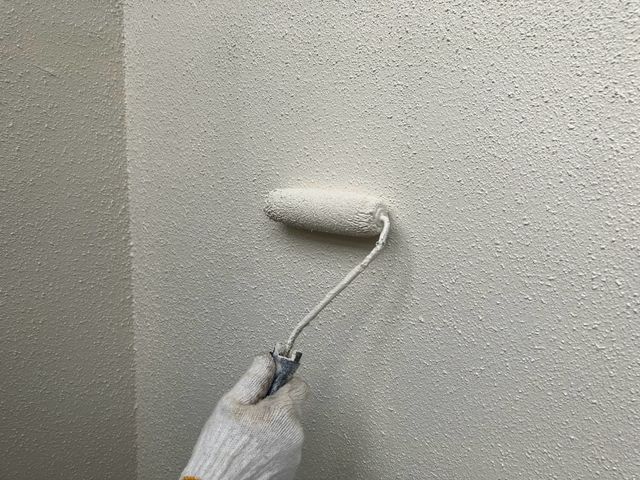 上塗り材との密着力を高めるため、状態に合わせた材料で下塗りを行います。外壁上塗り